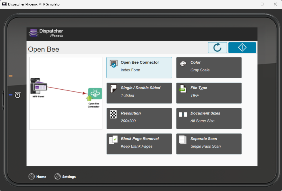 The Open Bee Connector node allows you to distribute documents to Open Bee, a popular digital platform and intelligent document management system. Documents can be sent to Open Bee via an automated workflow, or you can log into Open Bee directly at the MFP panel.