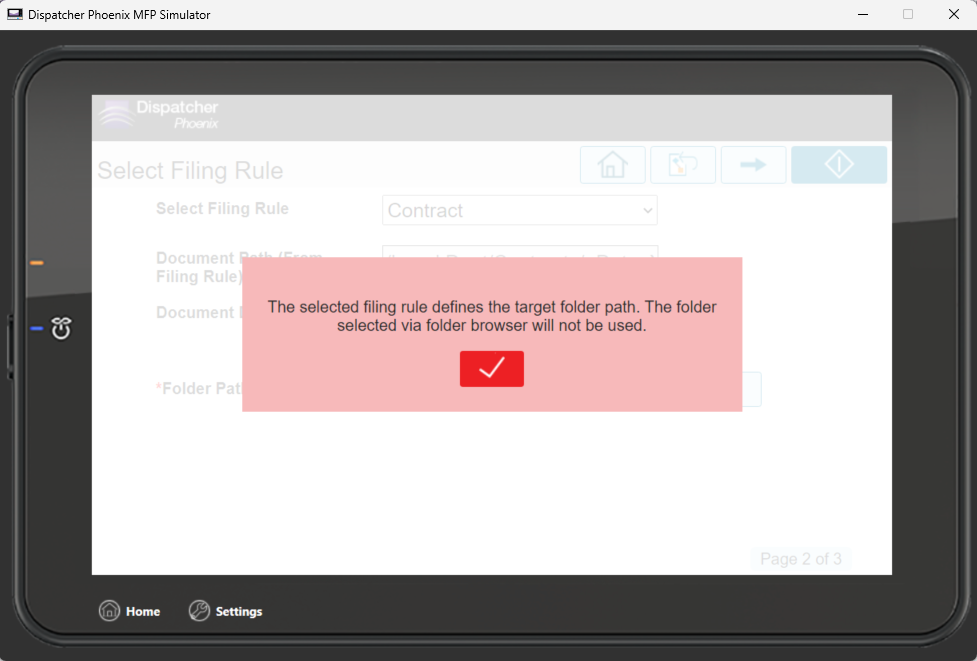 Select a Filing Rule and enter any additional information. If you select a rule that includes a folder path, that will overwrite anything entered in the Folder Path field. You will receive a notification: