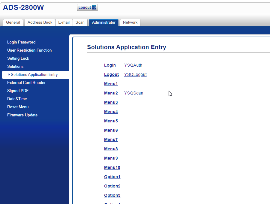 - After you installed the embedded terminal, navigate to the web interface of the Brother device.
