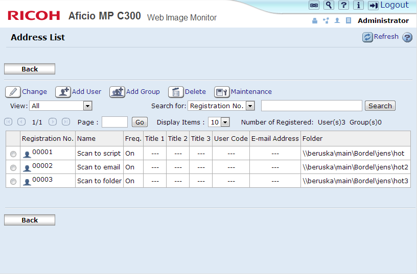 Adding SMB folder to address book via device web interface