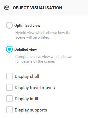 If you want to view a specific part of GCode such as shell, infill, or supports, you can switch to Detailed view.