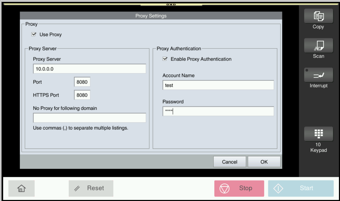 The Browser and WebDav Client settings of the MFD need to be configured to support Cloud Terminal to communicate via a proxy server.