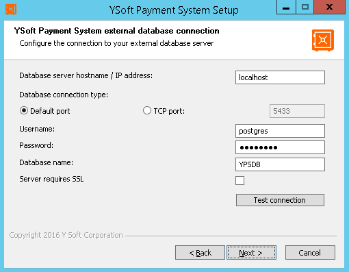 Dispatcher Paragon Payment System database name (e.g. YPSDB). The installer will attempt to create a new database using the specified credentials if a database of the given name does not exist.