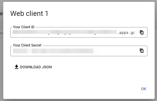 - Generated Client ID and Client Secret are available on the Credentials tab