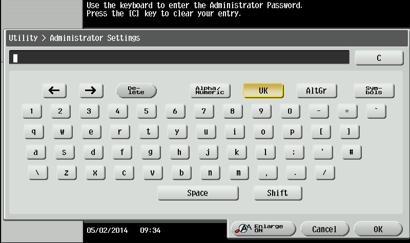 Enter the Administrator password for the MFD; then tap OK.