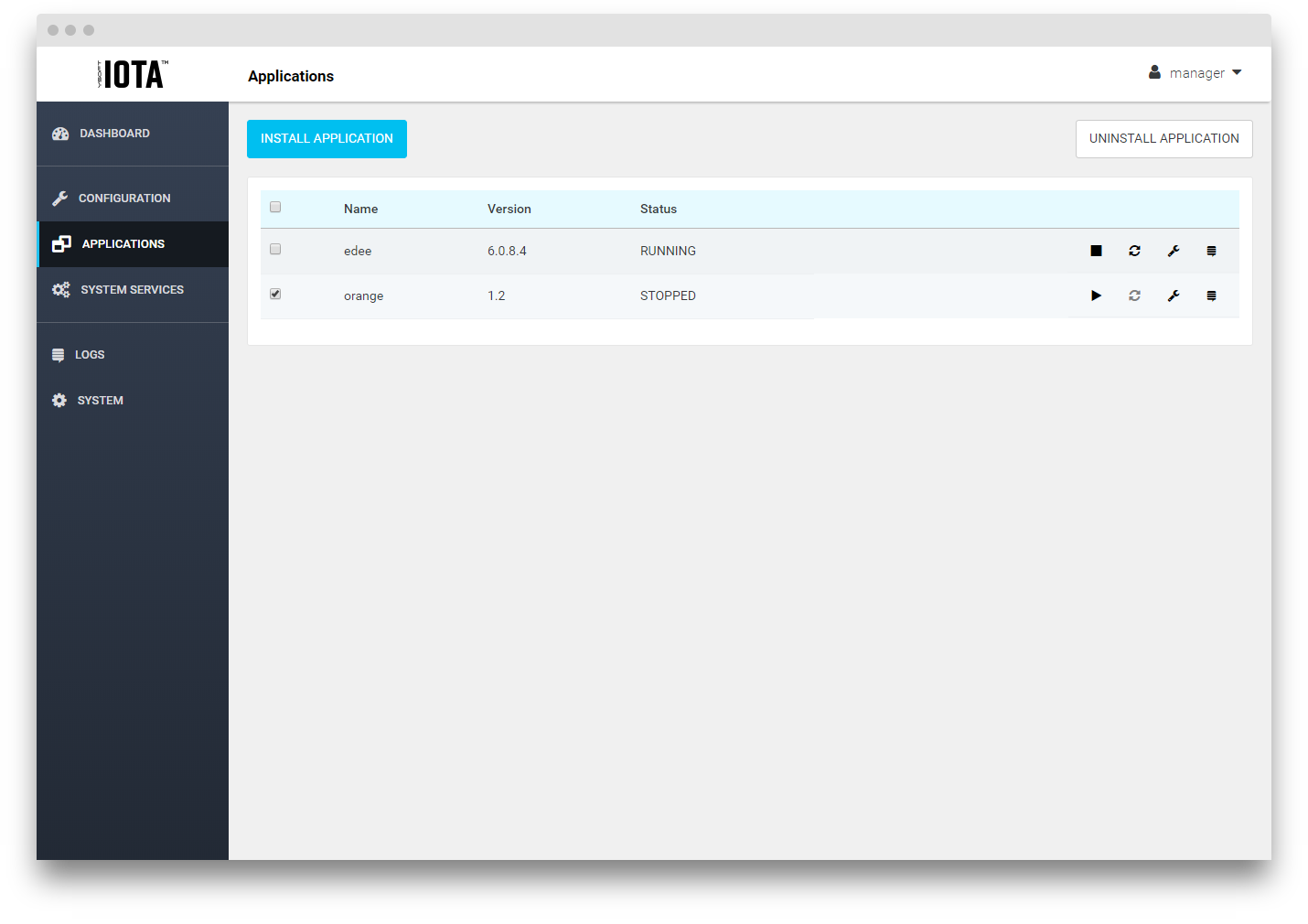 - Edit and details (wrench icon) - see sections Setting autostart and Configuring application parameter below for more info.