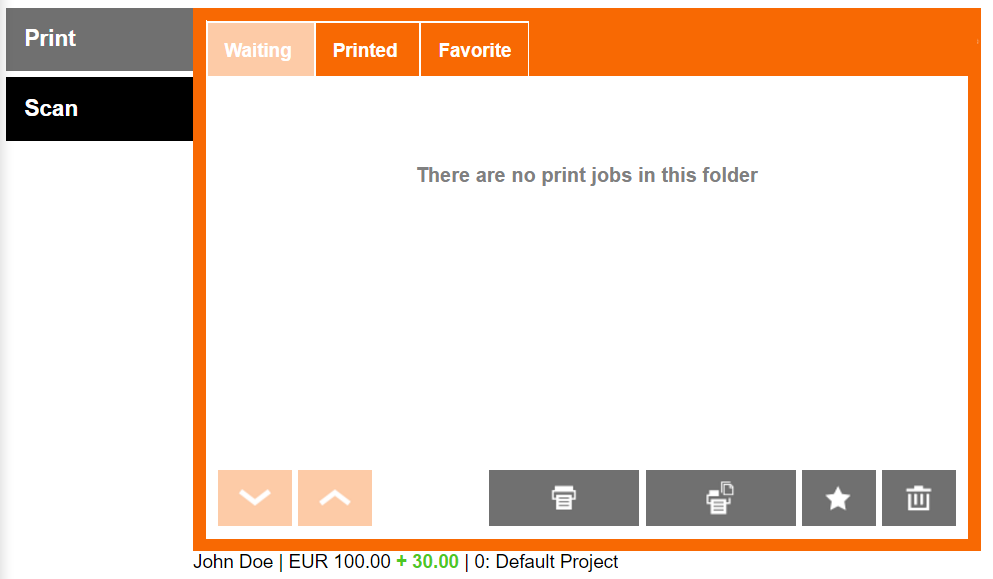 - Separated balances - The terminal shows the user’s personal and virtual balances separately. An example would be "EUR 20.52 + 13.04", where the virtual balance is in the green font (except for the native type of Dispatcher Paragon Embedded Terminal for Konica Minolta, where the representation would be "EUR 20.52 (+ 13.04 bonus)").