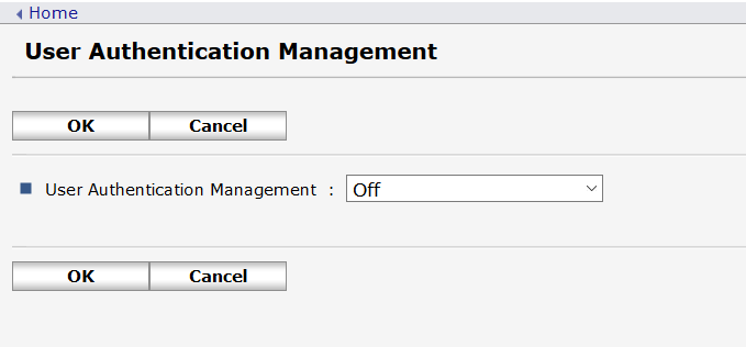 - Make sure User Administrator Authentication is turned on under Device Management > Configuration.