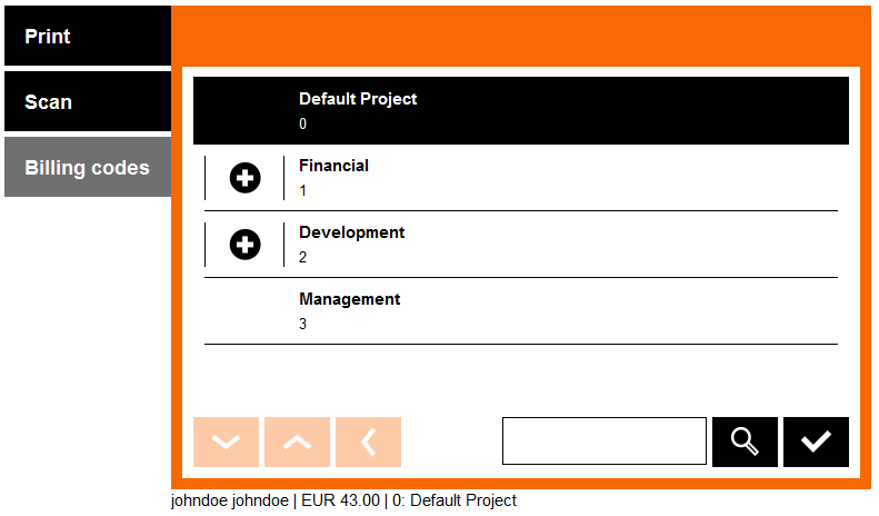 With Dispatcher Paragon Embedded Terminal, you can choose billing (project) codes in the application menu for copying and scanning in one session without logging out and logging in.